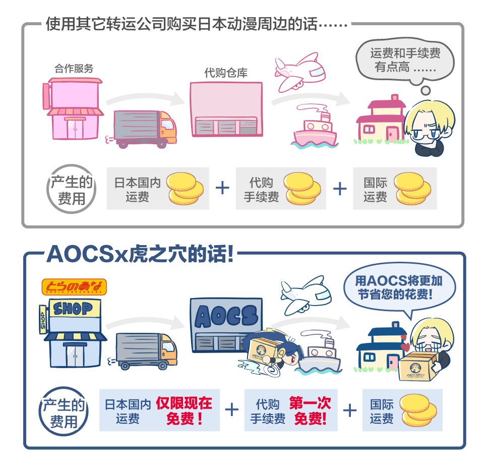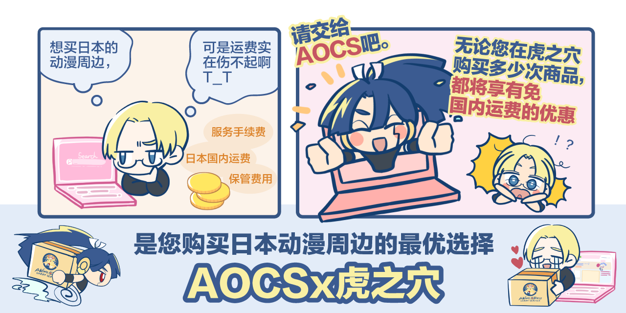 现在利用AOCS下单可享受免除日本国内运费的优惠!“AOCS x 虎之穴”的优惠活动简直难以置信!